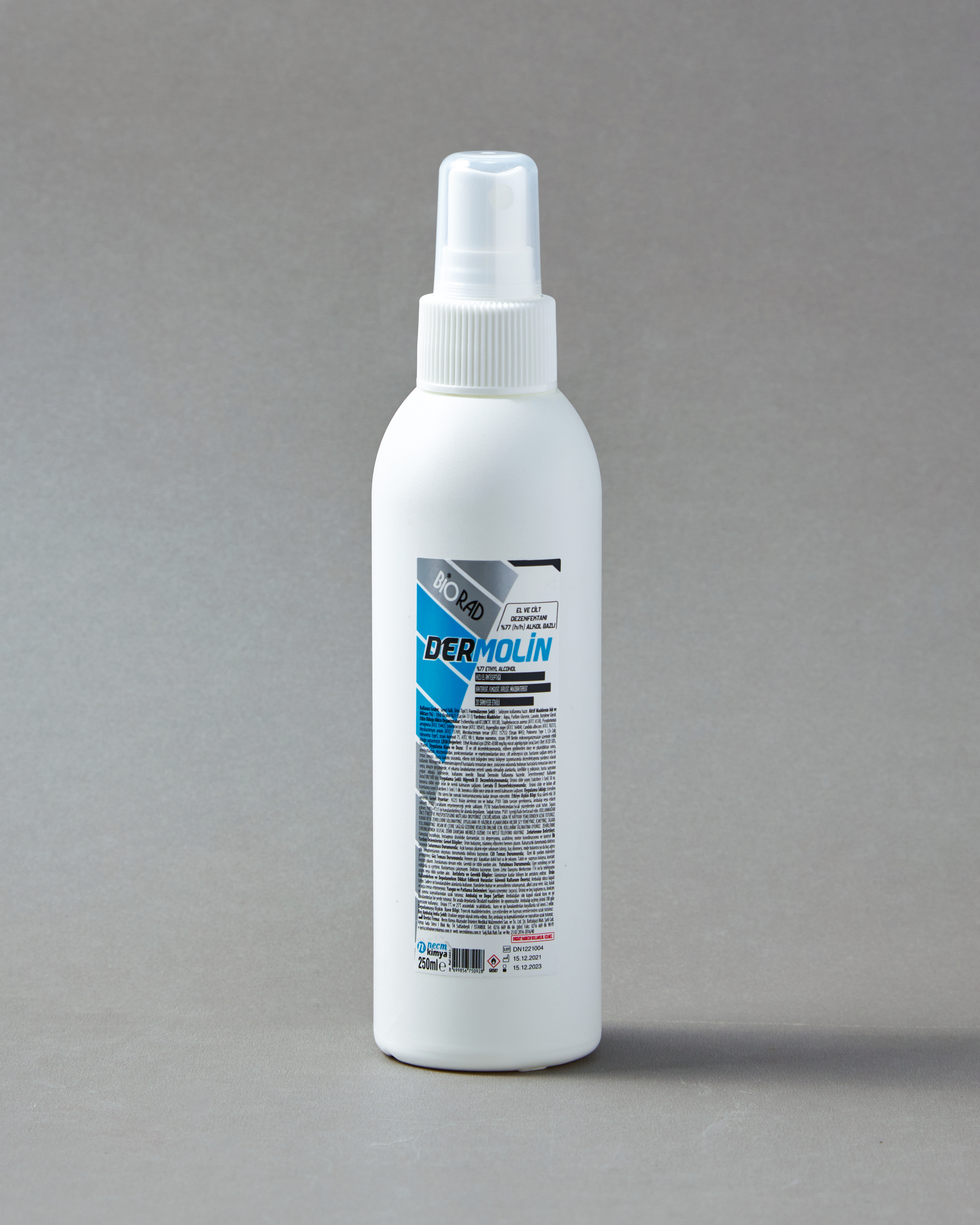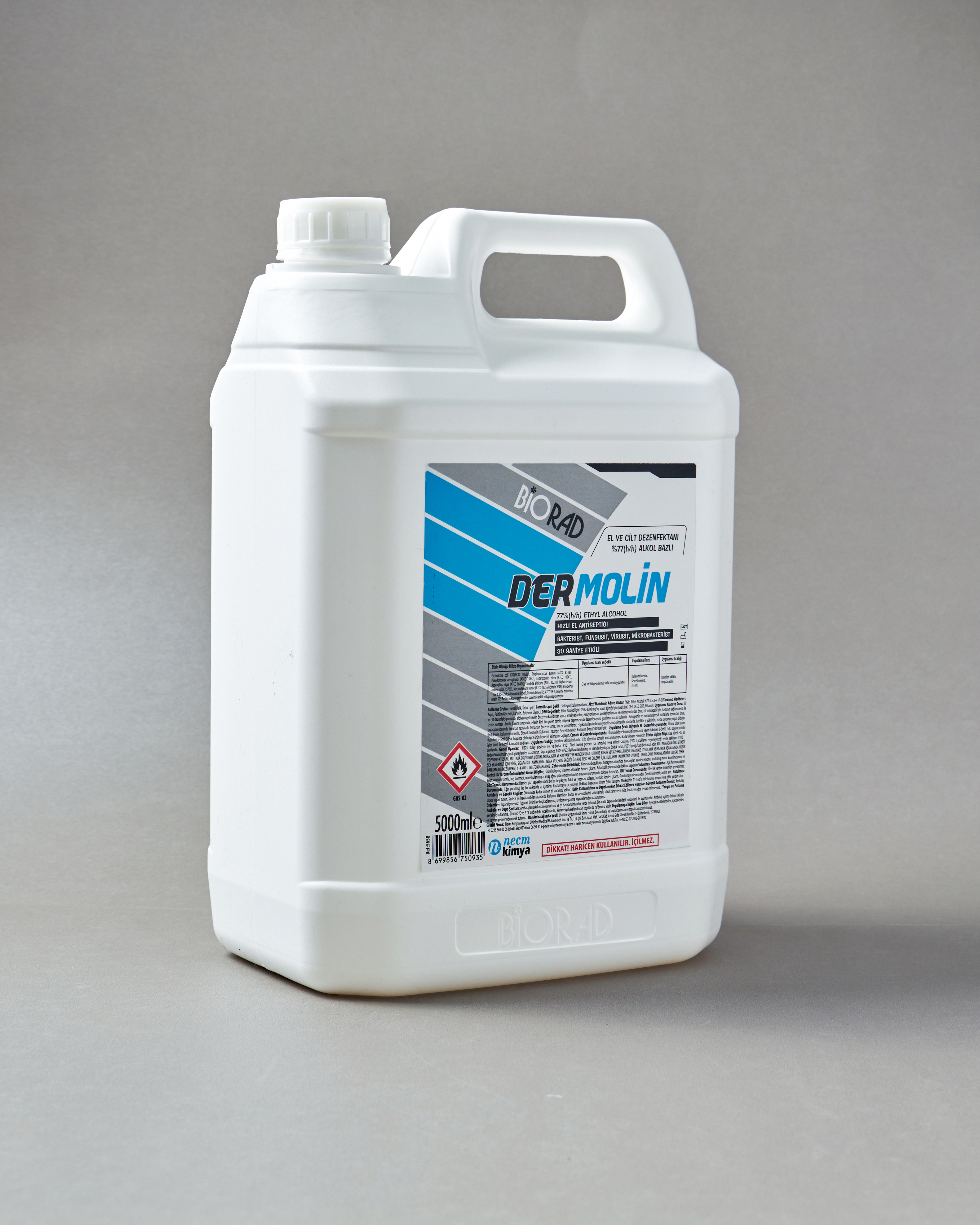 BIORAD Dermolin, %77 alkol içeren alkol bazlı formülü sayesinde el ve cilt üzerinde kısa sürede etkili antisepsi sağlar. Sağlık çalışanlarının el hijyeni, hasta teması öncesi ve sonrası uygulamalar ile genel hijyen gerektiren alanlarda güvenle kullanılmak üzere geliştirilmiştir. Hastaneler, klinikler, poliklinikler, laboratuvarlar ve yoğun bakım ünitelerinde rutin el ve cilt antiseptiği olarak tercih edilir. Cilt yumuşatıcı ve koruyucu bileşenleri sayesinde sık kullanıma uygundur ve kuruluk hissini azaltmaya yardımcı olur. Dermatolojik olarak test edilmiş yapısıyla profesyonel kullanıma uygun, güvenilir bir hijyen çözümü sunar.